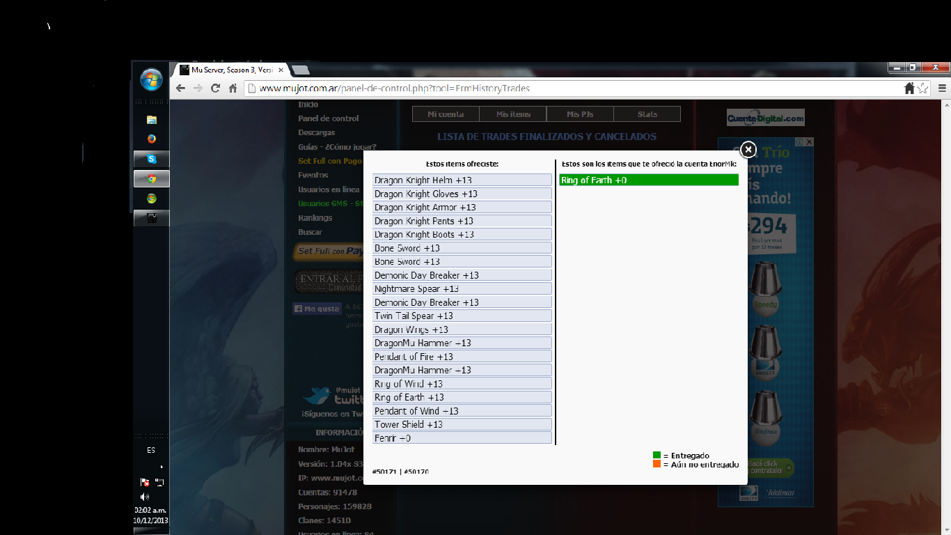 BUENO HOY UN PJ DEL MUJOT LLAMADO XxKrostyxX ME ROBO POR TRADE ONLINE E SACO MIS ET +ARMAS JOYERIA ALAS HARMONYS TODO -.- TENGO LA FOTO DEL ECHO..... QUIERO SABER QUE PUEDEN HACER MI PJ SE LLAMA Guachin-.-
