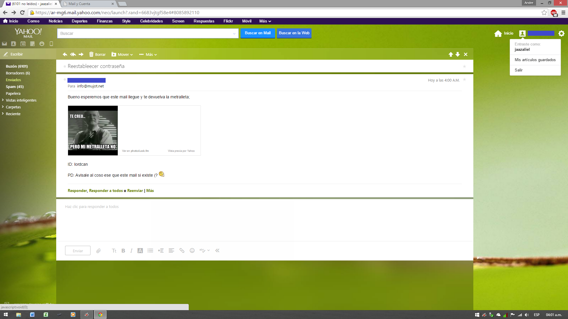 Lo mas sorprendente es que a pesar de todo intente entrar a yahoo.com (en ingles) usando el mismo password de