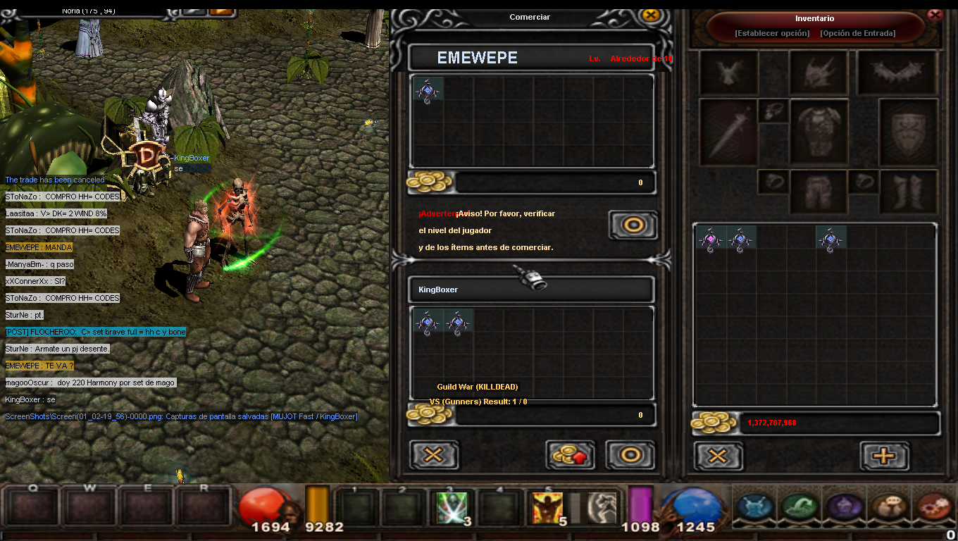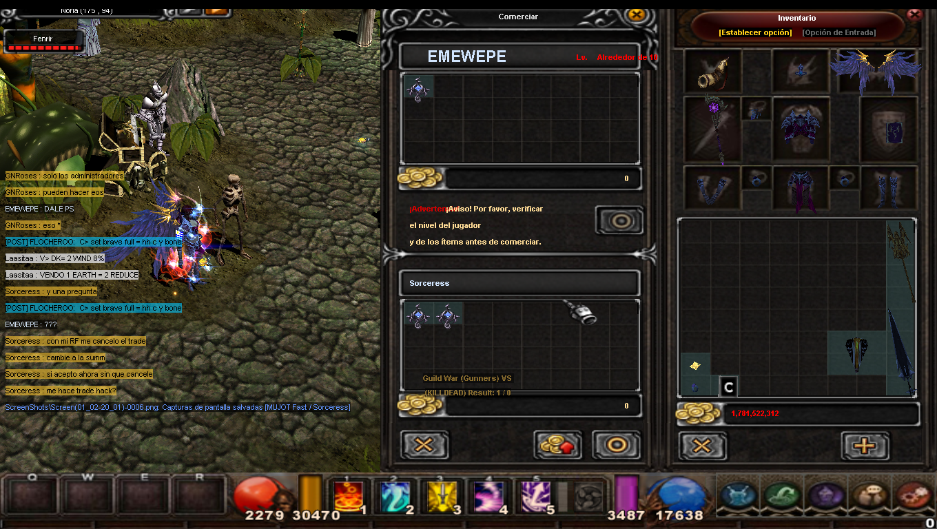 Me cambié de pj para eludir su "trade hack" y EMEWEPE seguía apurando el trade: