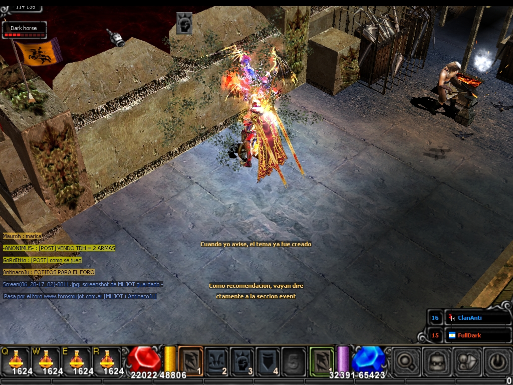 Bueno ante nada buenas tardes a todos , Les comento que estabamos haciendo un war , cuando el personaje este " Mauroh " me empezó a insultar indebidamente . Lo cual automaticamente me dirigi al foro , para denunciar sus insultos groseros que atento sobre mí , espero que puedan solucionar esto .. Porque este usuario tiene varias denuncias y sobre todo gente como este señor no puede dejarse pasar , Desde ya gracias saludos ! :x