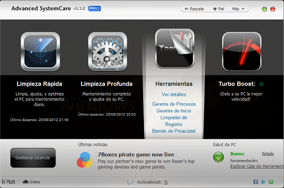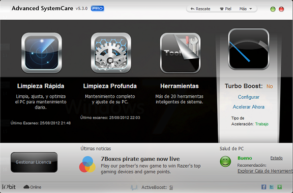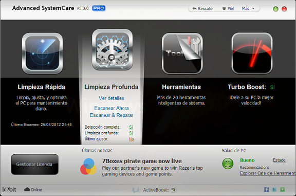 Bueno en este caso lo que yo les dejo ahora es el Advanced SystemCare con licencia para que puedan utilizar todas las opciones del programa.