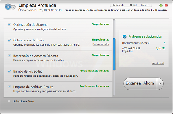 Su versión free nos permite acceder a herramientas básicas para mantención pero no por ello menos útiles, como lo son el limpiador de registros, desfragmentación, arreglo del disco, optimización, busca y detecta problemas ocultos de seguridad y rendimiento.