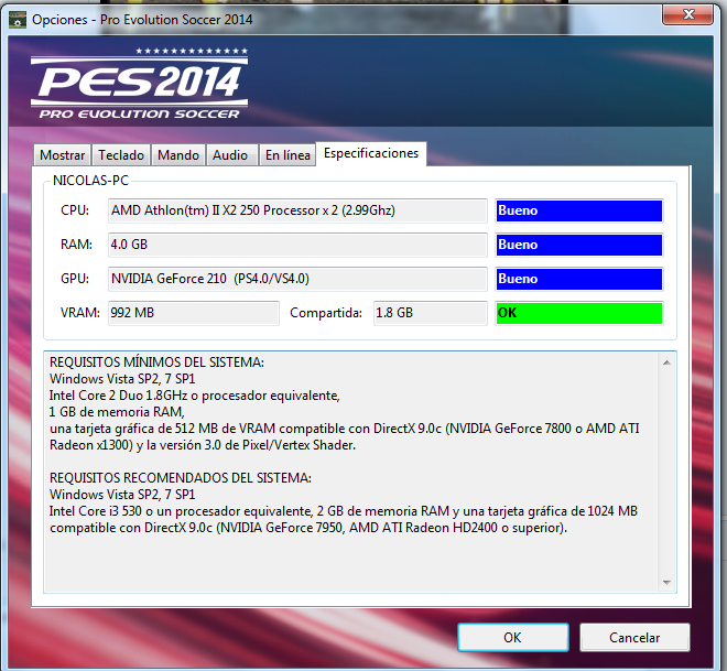 Pes 2014 pide buenos recursos para poder jugarlo.