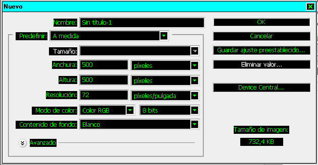 1:abrimos el photoshop con una nueva capa de 500 x 500